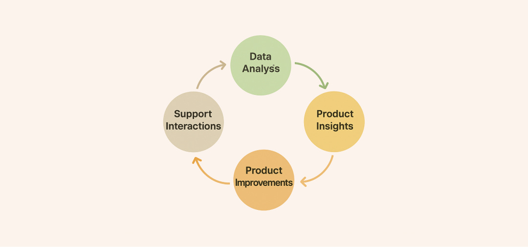 Pendo advises using product analytics to dig into why users seek help, analyzing common behaviors, points of friction, or challenging workflows that lead users to contact support. Feed these insights directly to your product team.